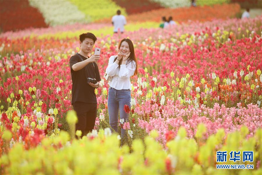 5月1日,游客在四川省遂寧市圣蓮花開(kāi)景區(qū)的金魚(yú)草花海中拍照。“五一”假日期間,人們以多種方式放松心情、享受假日。新華社發(fā)(劉昌松攝)