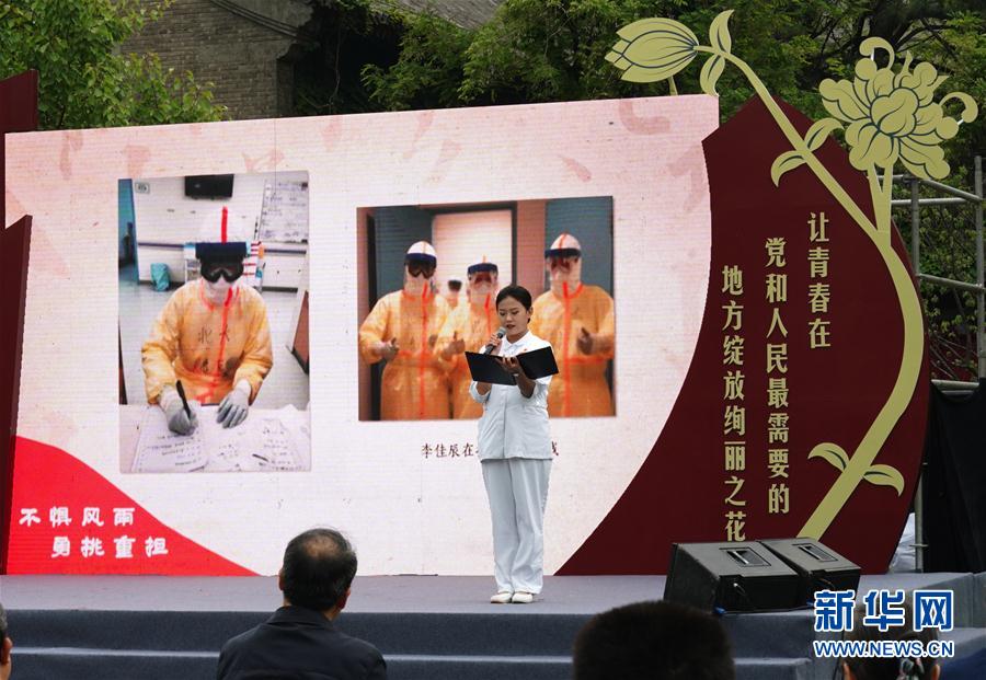 5月4日,北京大學(xué)援鄂醫(yī)療隊(duì)“90后”黨員代表在北大五四青春詩會(huì)朗誦。 當(dāng)日,北京大學(xué)通過與武漢大學(xué)、西藏大學(xué)、北京大學(xué)研究生支教團(tuán)聯(lián)合舉辦紀(jì)念五四運(yùn)動(dòng)升旗儀式以及北京大學(xué)2020年五四青春詩會(huì)等活動(dòng),傳承五四精神,紀(jì)念五四青年節(jié)。 新華社記者 張晨霖 攝