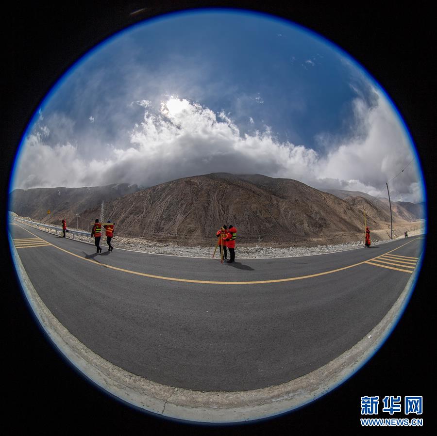 國(guó)測(cè)一大隊(duì)隊(duì)員在西藏定日縣曲當(dāng)鄉(xiāng)境內(nèi)進(jìn)行水準(zhǔn)測(cè)量(4月18日攝)。水準(zhǔn)測(cè)量是一種利用提供水平視線的儀器(如水準(zhǔn)儀、水準(zhǔn)標(biāo)尺),測(cè)定地面不同點(diǎn)之間的高差,并以此推算高度的一種方法,是經(jīng)典大地測(cè)量的重要技術(shù)之一。在目前正在進(jìn)行的2020珠峰高程測(cè)量中,部分國(guó)測(cè)一大隊(duì)隊(duì)員承擔(dān)了水準(zhǔn)測(cè)量的任務(wù)。新華社記者孫非攝