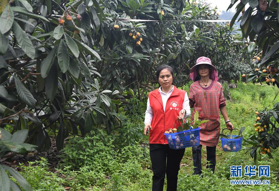 唐莉(左)在平樂(lè)縣張家鎮(zhèn)老埠村了解村民家庭農(nóng)場(chǎng)運(yùn)營(yíng)情況(5月4日攝)。新華社記者周華攝