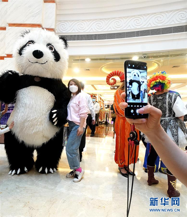 5月5日,顧客在上海環(huán)球港商場(chǎng)與大熊貓人偶合影。5月4日晚,上海首次啟動(dòng)大規(guī)模商業(yè)促銷活動(dòng)“五五購物節(jié)”,多家在線新經(jīng)濟(jì)企業(yè)參與,通過線上流量?jī)?yōu)勢(shì)反哺線下賣場(chǎng),實(shí)現(xiàn)電商與實(shí)體零售融合互動(dòng),激活消費(fèi)潛力、驅(qū)動(dòng)消費(fèi)復(fù)蘇。據(jù)“上海發(fā)布”的消息,截至5日14時(shí)12分,“五五購物節(jié)”上海地區(qū)消費(fèi)支付總額已超100億元。新華社記者陳飛攝