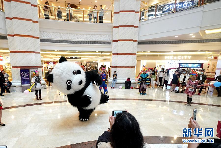 5月5日,大熊貓人偶在上海環(huán)球港商場為“五五購物節(jié)”營造氣氛。5月4日晚,上海首次啟動大規(guī)模商業(yè)促銷活動“五五購物節(jié)”,多家在線新經(jīng)濟(jì)企業(yè)參與,通過線上流量優(yōu)勢反哺線下賣場,實(shí)現(xiàn)電商與實(shí)體零售融合互動,激活消費(fèi)潛力、驅(qū)動消費(fèi)復(fù)蘇。據(jù)“上海發(fā)布”的消息,截至5日14時12分,“五五購物節(jié)”上海地區(qū)消費(fèi)支付總額已超100億元。新華社記者陳飛攝