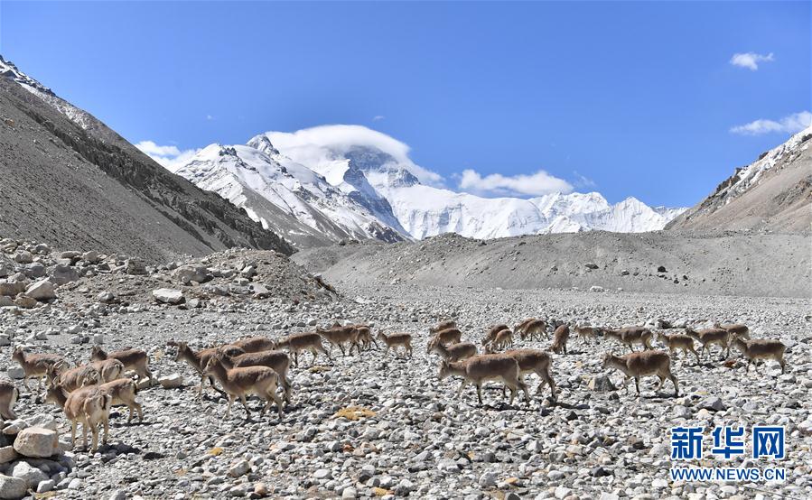 一群巖羊在珠峰大本營附近覓食(5月8日攝)。當(dāng)日,一群巖羊在珠峰大本營周圍覓食,黃嘴山鴉飛到巖羊身上停留,構(gòu)成一幅幅生動有趣的雪域圖畫。新華社記者普布扎西攝