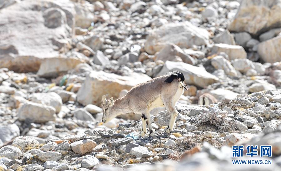 黃嘴山鴉停在巖羊背上(5月8日攝)。當(dāng)日,一群巖羊在珠峰大本營(yíng)周圍覓食,黃嘴山鴉飛到巖羊身上停留,構(gòu)成一幅幅生動(dòng)有趣的雪域圖畫。新華社記者普布扎西攝