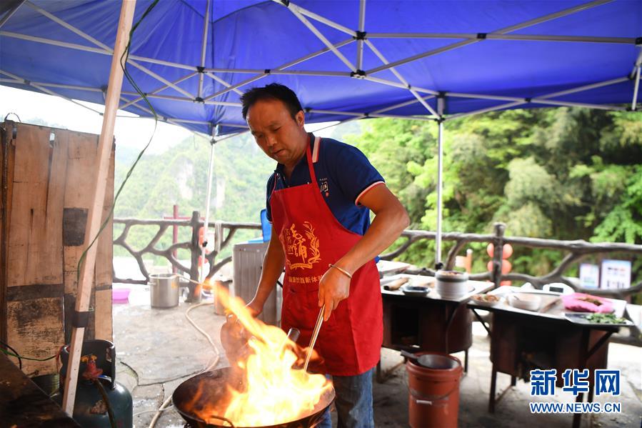 施六金在自家開的農(nóng)家樂為客人準(zhǔn)備午餐(4月25日攝)。1973年出生于十八洞村的施六金,由于父親患病很早就放棄學(xué)業(yè)和母親扛起了家庭的重?fù)?dān)。為了生活,他還曾遠(yuǎn)去東南亞打工。2015年,看到家鄉(xiāng)的變化,施六金回到村里開起了農(nóng)家樂,年度家庭人均純收入也從2014年的1715元增長(zhǎng)到了2019年的35696元。2018年,施六金與心愛的人組建了家庭。今年初,施六金與愛人迎來(lái)了一個(gè)大胖小子?!白鋈俗鍪乱没貓?bào)和感恩?!笔┝鸾o剛出生的兒子取名施澤恩。新華社記者薛宇舸攝