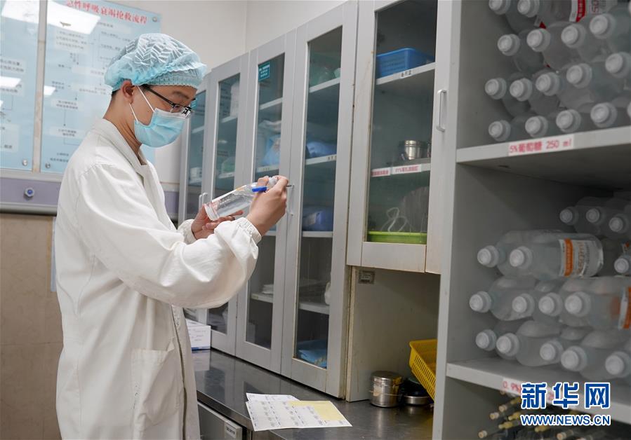 5月10日,在上海市普陀區(qū)中心醫(yī)院急診室,護(hù)士蔡杰君在準(zhǔn)備藥品。他曾在浦東國際機場“外防輸入”抗疫一線堅守30天。新華社記者劉穎攝