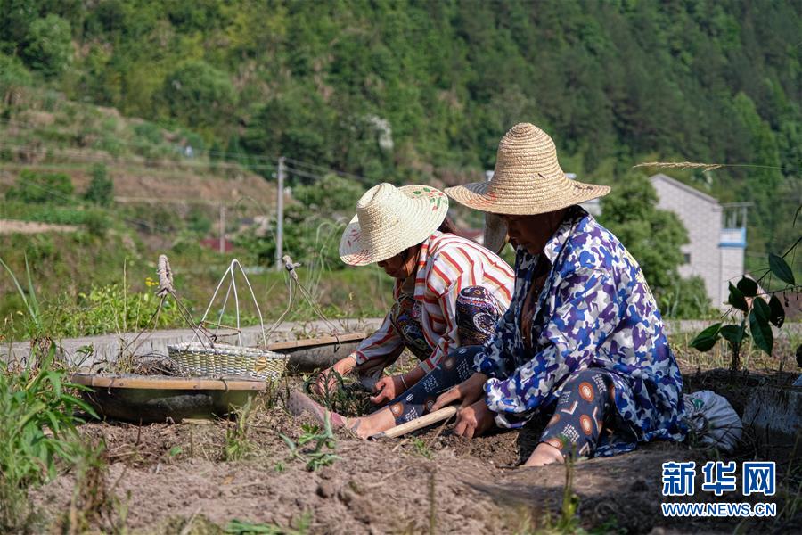 5月12日,青田縣巨浦鄉(xiāng)西坑村的村民在梯田收獲中藥貝母。新華社記者徐昱攝