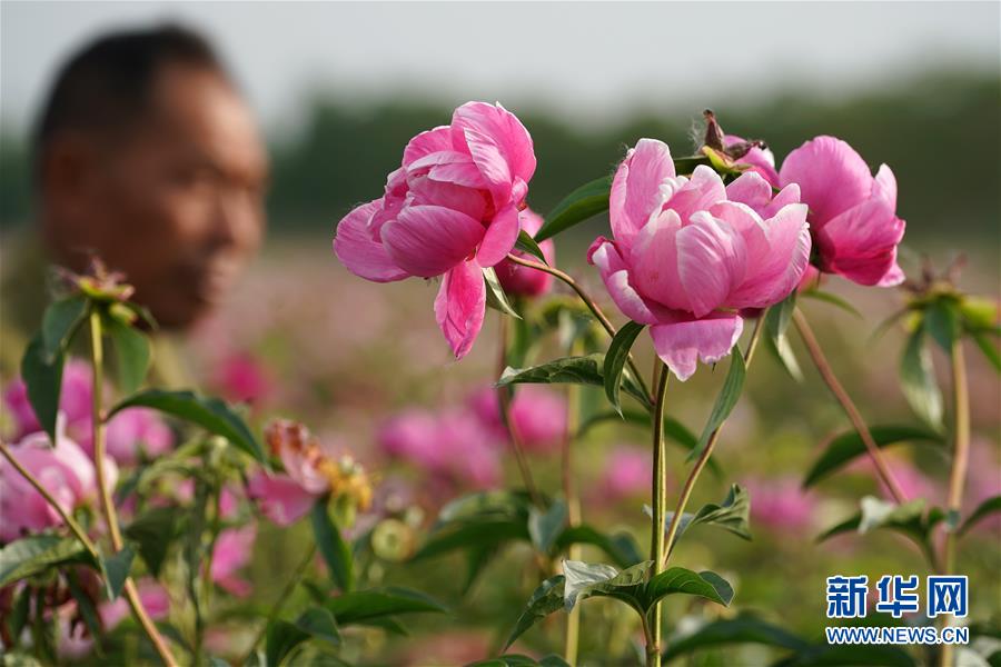 工作人員在金湖縣金燦芍藥園里進行農(nóng)業(yè)管理(5月11日攝)。新華社記者韓瑜慶攝