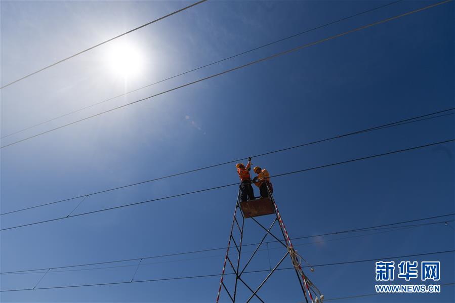 5月12日,中國鐵路上海局集團(tuán)公司上海高鐵維修段的技術(shù)人員在商合杭高鐵浙江湖州段調(diào)整接觸網(wǎng)導(dǎo)線。近日,商合杭高鐵合肥至湖州段聯(lián)調(diào)聯(lián)試正有條不紊進(jìn)行中。中國鐵路上海局集團(tuán)公司上海高鐵維修段抽調(diào)49名精兵強(qiáng)將,持續(xù)對管轄范圍內(nèi)的高鐵線路、信號、接觸網(wǎng)線進(jìn)行調(diào)試,為下一階段打下基礎(chǔ)。據(jù)了解,商合杭高鐵合湖段聯(lián)調(diào)聯(lián)試之后將轉(zhuǎn)入運(yùn)行試驗階段,驗收合格并通過安全評估后,力爭6月底具備開通運(yùn)營條件。新華社記者黃宗治攝