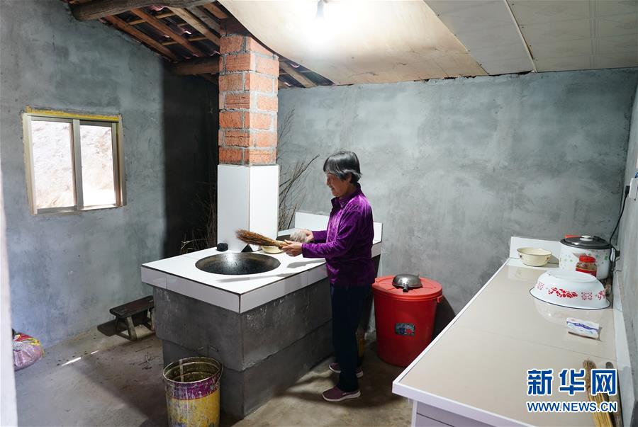 5月12日,在安康市漢濱區(qū)早陽鎮(zhèn)寨埡村,村民尚玉蓮在自家改造后的廚房內清潔灶臺。新華社記者邵瑞攝