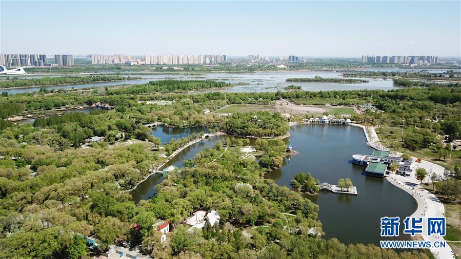 這是5月13日拍攝的太陽島風(fēng)景區(qū)(無人機(jī)照片)。時(shí)下,位于黑龍江省哈爾濱市的太陽島國家級風(fēng)景名勝區(qū)草青樹綠,綠意盎然。新華社記者王建威攝