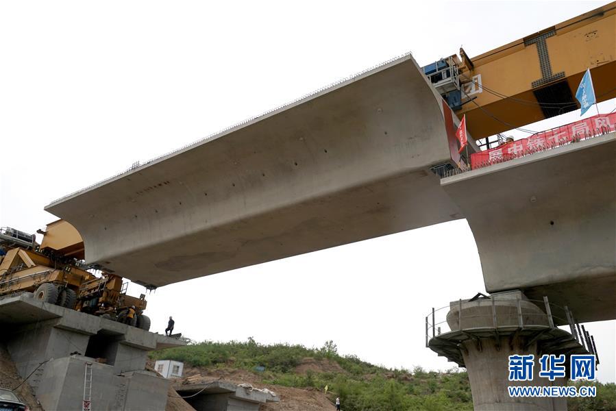 5月13日,運(yùn)架一體機(jī)在位于河南焦作的施工現(xiàn)場進(jìn)行架梁作業(yè)(無人機(jī)照片)。 當(dāng)日,隨著最后一榀長24米、重552噸的箱梁架設(shè)就位,太焦高鐵全線橋梁架設(shè)完成。從山西太原到河南焦作的太焦高鐵是國家規(guī)劃建設(shè)的“八縱八橫”高速鐵路網(wǎng)的重要組成部分,計(jì)劃2020年底建成通車。 新華社記者李安攝