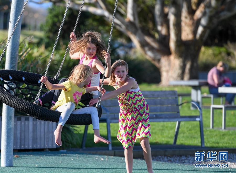 5月14日,孩子們在首都惠靈頓郊外公園的游樂場玩耍。當天是新西蘭從新冠疫情防控響應(yīng)三級下調(diào)到二級的第一天,經(jīng)濟活動全面重啟,公園等公共設(shè)施首次重新開放,中小學生將于5月18日全面返校復課。新華社記者郭磊攝