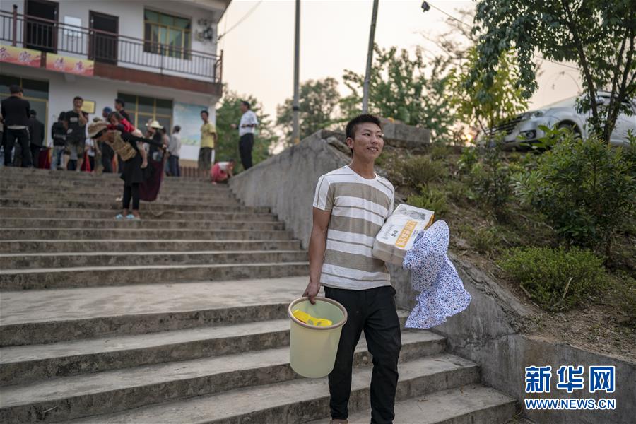 村民王九才在一個(gè)月一次的紅黑榜評(píng)比中獲得“五好村民”的榮譽(yù)(3月28日攝)。新華社記者江文耀攝