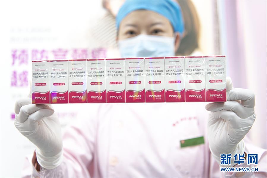 5月18日,在湖北省婦幼保健院,護士展示國產(chǎn)HPV疫苗。當日,首批國產(chǎn)HPV疫苗(人乳頭瘤病毒疫苗)在武漢的湖北省婦幼保健院開始接種。新華社記者熊琦攝