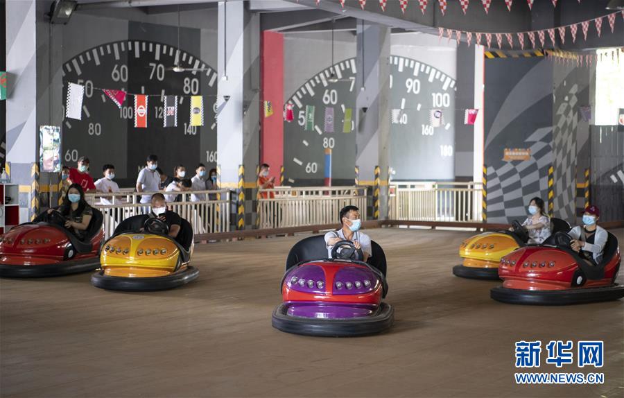 5月19日,游客在武漢歡樂谷內(nèi)游玩。當(dāng)日,湖北武漢歡樂谷重新開放。園區(qū)執(zhí)行客流量管控,游客需通過網(wǎng)上預(yù)約才能進入,室內(nèi)場館暫不開放。新華社記者熊琦攝