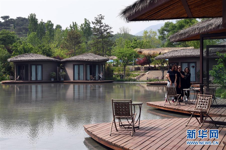 5月20日,游客在天津市薊州區(qū)下營鎮(zhèn)小港村“不知山鄉(xiāng)宿”休閑拍照。新華社記者馬平攝