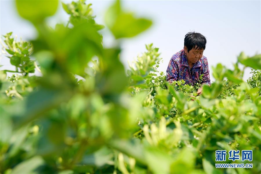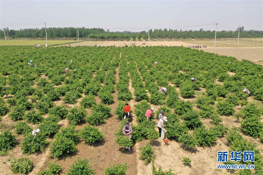 5月21日,河北省清河縣農(nóng)墾金銀花種植專業(yè)合作社社員在采收金銀花(無(wú)人機(jī)照片)。2017年以來(lái),河北省清河縣在推進(jìn)農(nóng)業(yè)產(chǎn)業(yè)結(jié)構(gòu)調(diào)整過(guò)程中,結(jié)合市場(chǎng)需求,立足當(dāng)?shù)赝寥馈夂蛱攸c(diǎn),依托公司“訂單”引導(dǎo)農(nóng)民發(fā)展金銀花種植。目前,清河縣金銀花種植面積近2000畝,帶動(dòng)40多個(gè)村莊的2000余名農(nóng)民人均增收千元以上。新華社記者牟宇攝