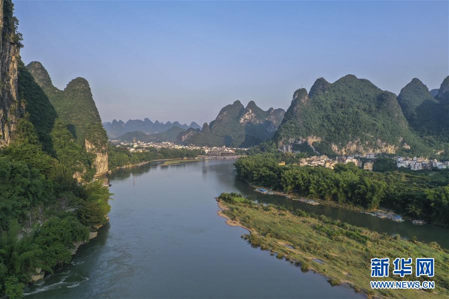 這是在廣西桂林市陽(yáng)朔縣興坪鎮(zhèn)拍攝的山水風(fēng)光(5月19日攝,無(wú)人機(jī)照片)?!吧n蒼森八桂,茲地在湘南。江作青羅帶,山如碧玉篸……”一千多年前,唐朝詩(shī)人韓愈寫盡桂林山水之美。初夏時(shí)節(jié),在廣西桂林市陽(yáng)朔縣興坪鎮(zhèn),藍(lán)天白云下,煙雨朦朧中,桂林山水盡顯秀美。新華社記者 曹祎銘 攝