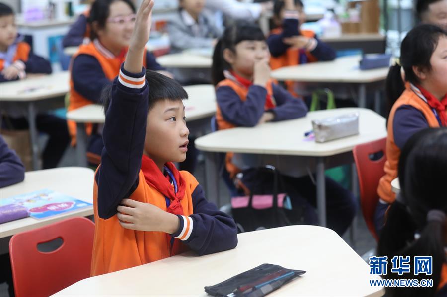5月25日,貴陽市中天北京小學(xué)未來方舟校區(qū)一名學(xué)生在開學(xué)第一課上舉手發(fā)言。新華社記者歐東衢攝