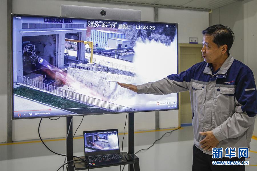 5月26日,藍箭航天技術有限公司總經(jīng)理杜方平介紹發(fā)動機點火試驗。新華社記者張玉薇攝