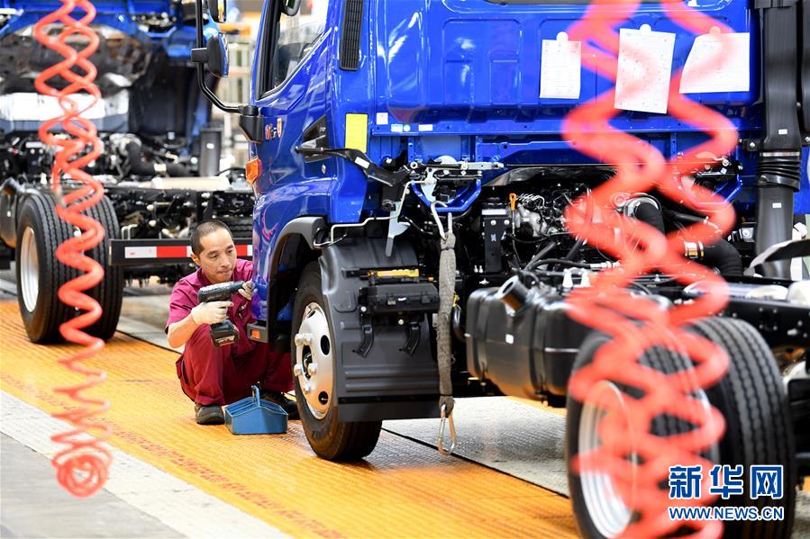 5月26日,工人在江淮汽車新港基地輕卡生產區(qū)內忙碌。新華社記者劉軍喜攝