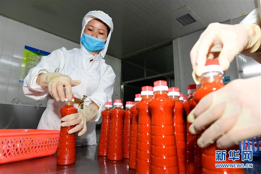 5月26日,工人在貴州省黔東南苗族侗族自治州麻江縣明洋食品公司生產(chǎn)車間灌裝古法酸湯。新華社記者楊楹攝