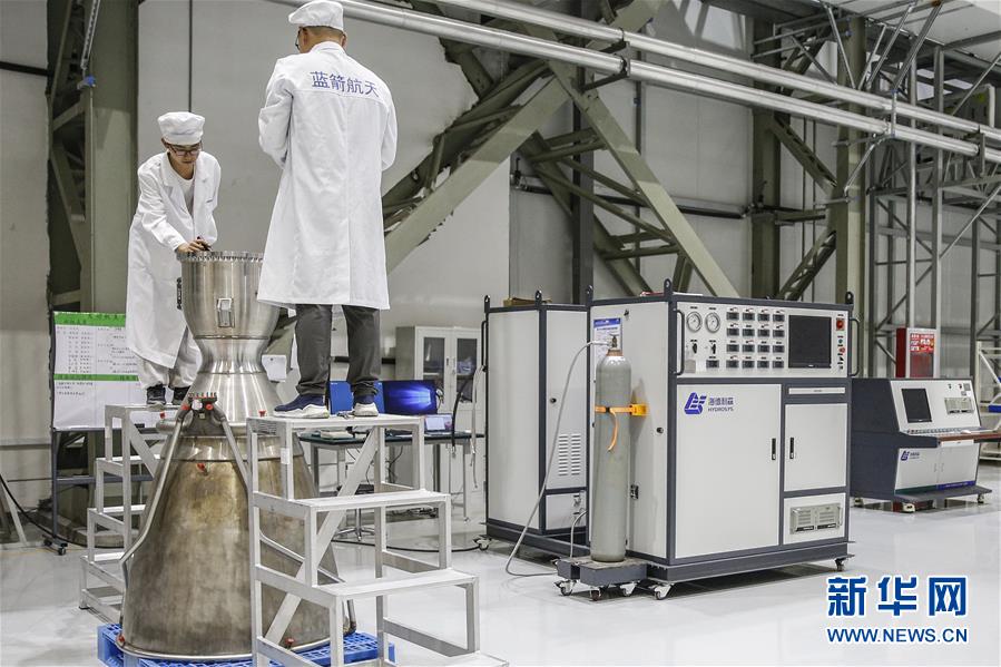 5月26日,工作人員在藍(lán)箭航天(湖州)智能制造基地發(fā)動機裝配區(qū)進(jìn)行發(fā)動機質(zhì)檢工作。新華社記者張玉薇攝