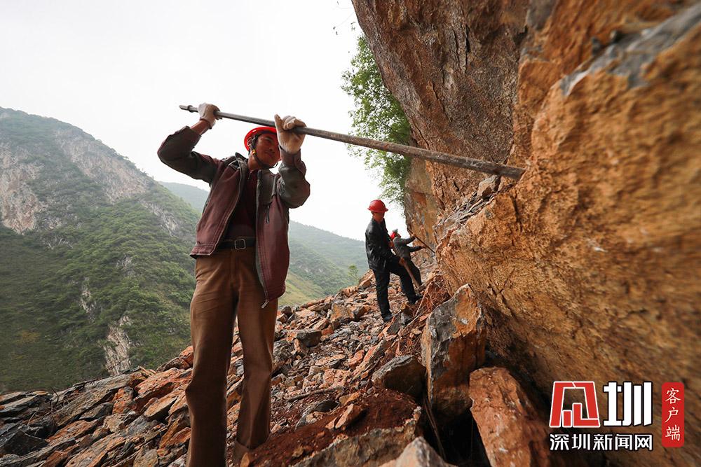 經過幾年的努力,修通了大約4公里的毛路,但剩下觀音巖近1000米的懸崖絕壁成了當?shù)厝罕娒撠毠月飞系摹皵r路虎”,幾批施工隊伍都因為施工難度大而放棄。2019年底,化作鄉(xiāng)黨委政府順應民意,多方籌措資金,決定打通這條產業(yè)路、民心路的“最后一公里”。今年1月工程啟動后,深受當?shù)厝罕姎g迎,大家踴躍投工投勞,義務參與建設。