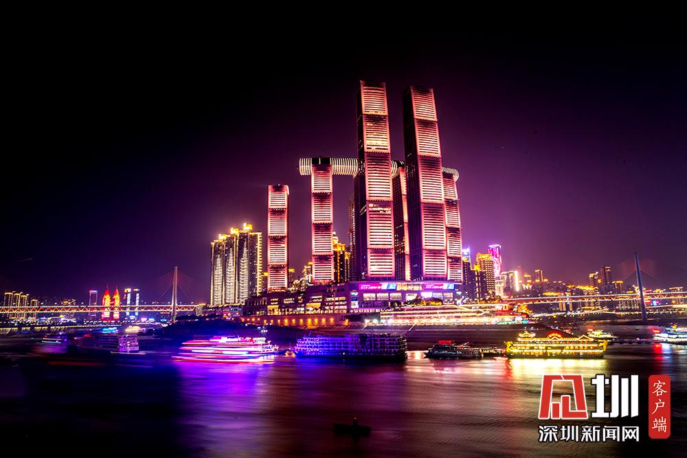 圖為夜色中重慶朝天門(mén)來(lái)福士廣場(chǎng)。