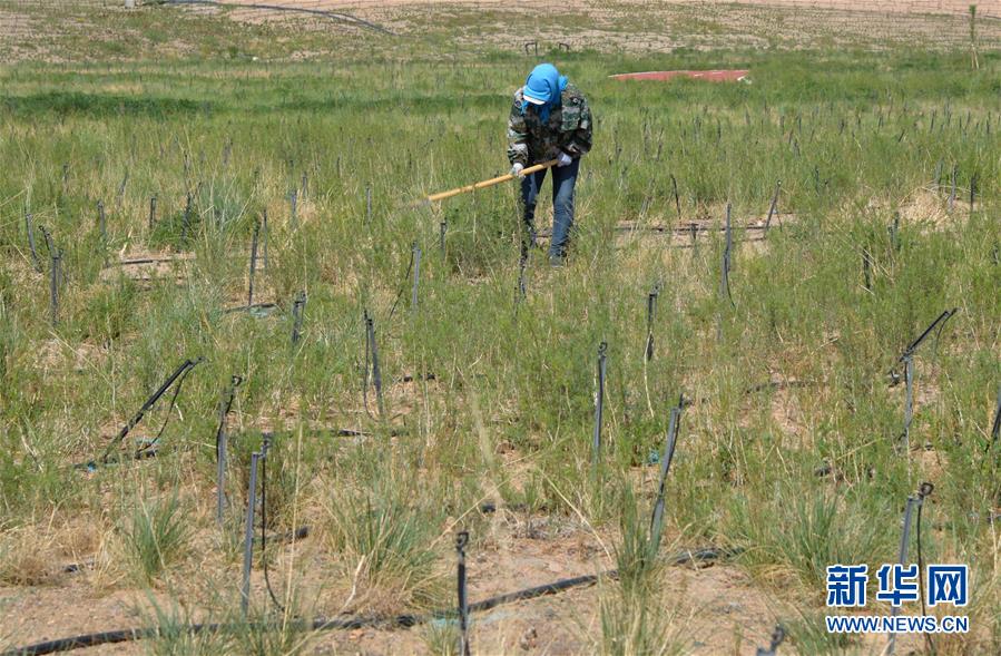 5月28日,工人在巴丹吉林鎮(zhèn)生態(tài)修復(fù)項(xiàng)目南部河道附近進(jìn)行補(bǔ)植作業(yè)。2017年以來,內(nèi)蒙古阿拉善右旗在巴丹吉林鎮(zhèn)開展生態(tài)修復(fù)項(xiàng)目,種植適合在當(dāng)?shù)厣L的馬蓮、紅柳等植物,修復(fù)生態(tài)的同時(shí)也起到美化作用。巴丹吉林鎮(zhèn)是巴丹吉林沙漠旅游景區(qū)的游客集散地,這里常年干旱少雨,水資源匱乏。新華社記者徐欽攝