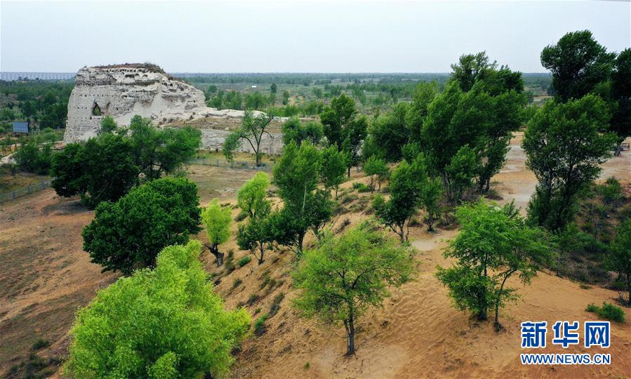 統(tǒng)萬城北接浩瀚的毛烏素沙漠,千余年來,隨著惡劣生態(tài)環(huán)境的影響,曾經(jīng)的城池遺存遭到風(fēng)雨流沙侵蝕,一度掩埋于沙漠之下。如今,隨著當(dāng)?shù)貛状舜罅χ紊常鷳B(tài)環(huán)境得以明顯改善,統(tǒng)萬城遺址也隨之變成綠意盎然的“大漠名勝”。