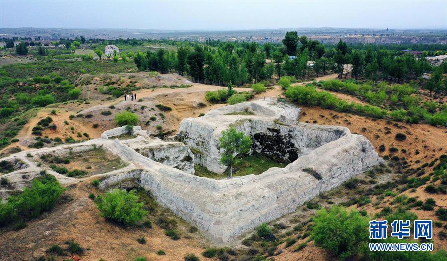 統(tǒng)萬城西南角城臺(tái)遺址(5月30日攝,無人機(jī)照片)。新華社記者劉瀟攝