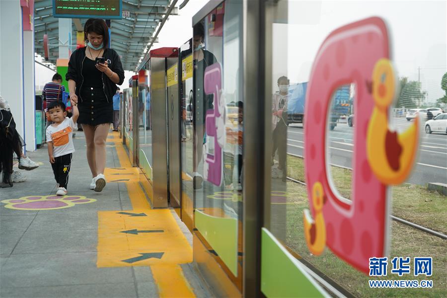 5月31日,乘客在南京市建鄴區(qū)河西新城有軌電車友誼街站候車。新華社記者季春鵬攝