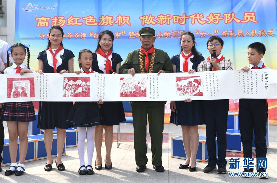 5月29日,孩子們向李延年贈(zèng)送“紅色畫卷”?!傲弧眹H兒童節(jié)來臨之際,“共和國勛章”獲得者、老一輩戰(zhàn)斗英雄李延年來到廣西南寧市濱湖路小學(xué)給孩子們講述戰(zhàn)爭年代的紅色故事,寄語他們好好學(xué)習(xí)、努力奮斗。孩子們向李延年贈(zèng)送了師生共繪的“紅色畫卷”,向老英雄致敬。新華社記者周華攝