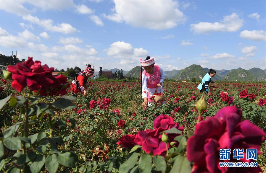 6月2日,云南丘北縣八道哨鄉(xiāng)阿諾村的少數(shù)民族婦女在種植基地采摘食用玫瑰花。云南省文山壯族苗族自治州丘北諾香花卉農(nóng)業(yè)科技開發(fā)有限公司自2016年以來發(fā)展食用玫瑰花種植1200畝,集生產(chǎn)加工、銷售玫瑰花系列產(chǎn)品及旅游觀光于一體,帶動當?shù)?00多戶群眾脫貧增收。新華社記者楊宗友攝