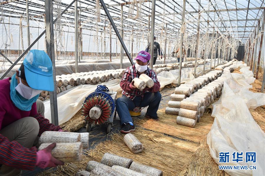 延邊朝鮮族自治州圖們市石峴鎮(zhèn)合鑫農(nóng)民專業(yè)合作社的農(nóng)戶在大棚內(nèi)工作(4月11日攝)。新華社記者林宏攝。