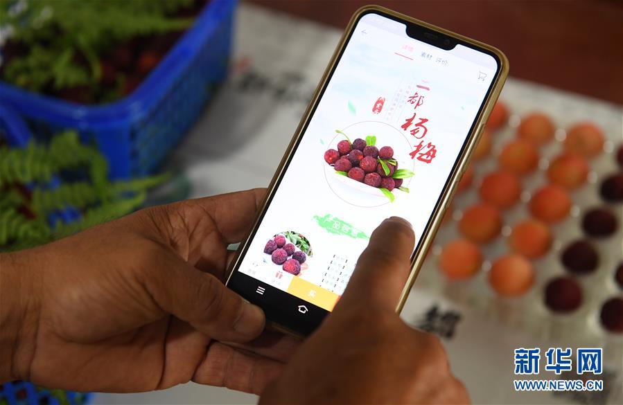 6月3日,在上虞區(qū)驛亭鎮(zhèn),舜利水晶楊梅專業(yè)合作社果農(nóng)在查看自己的電商平臺(tái)楊梅銷售頁(yè)面。近日,浙江紹興上虞區(qū)二都楊梅開采。楊梅是上虞區(qū)傳統(tǒng)特色農(nóng)產(chǎn)品,目前上虞區(qū)二都楊梅種植面積1651公頃,年產(chǎn)量1.1萬(wàn)噸,2019年二都楊梅成功申報(bào)國(guó)家農(nóng)產(chǎn)品地理標(biāo)志認(rèn)證。新華社記者翁忻旸攝。