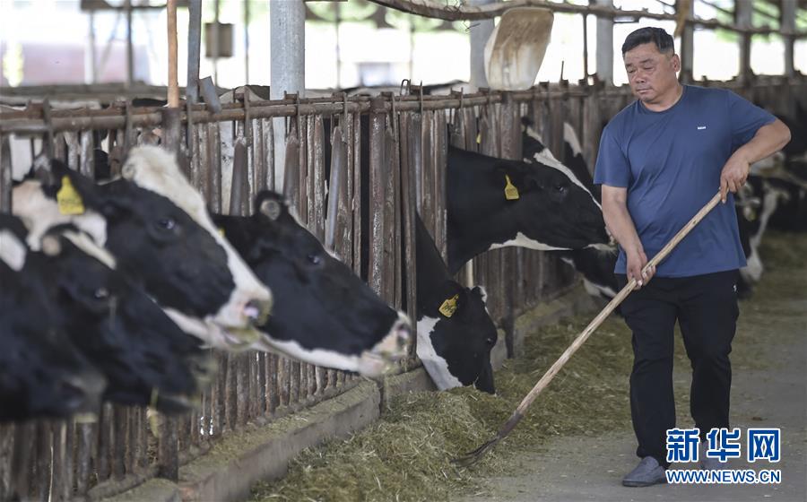 6月3日,村民在深州市榆科鎮(zhèn)郝家莊村奶牛養(yǎng)殖扶貧基地飼喂奶牛。今年以來(lái),河北省深州市圍繞決勝全面小康、決戰(zhàn)脫貧攻堅(jiān)任務(wù)目標(biāo),在推進(jìn)產(chǎn)業(yè)扶貧的過(guò)程中注重激發(fā)內(nèi)生動(dòng)力,通過(guò)電商扶貧、扶貧車間、特色種植養(yǎng)殖等多種形式,提升自我“造血”功能,提高貧困群眾受益度。新華社記者李曉果攝。