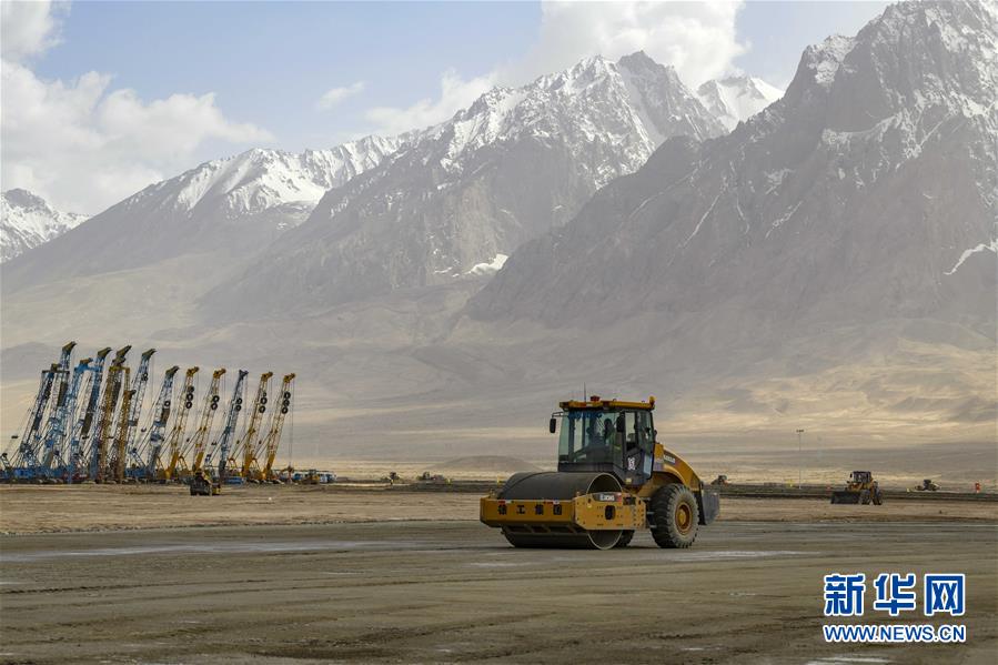 新疆塔什庫爾干機(jī)場施工現(xiàn)場(6月3日攝)。新華社記者胡虎虎攝。