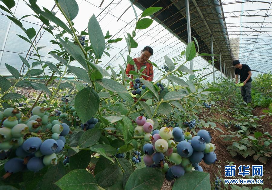 6月4日,唐山市豐潤(rùn)區(qū)火石營(yíng)鎮(zhèn)趙莊子村百草坡農(nóng)產(chǎn)品農(nóng)民專(zhuān)業(yè)合作社社員在生態(tài)農(nóng)業(yè)園的大棚內(nèi)采摘藍(lán)莓。新華社記者郭雅茹攝。