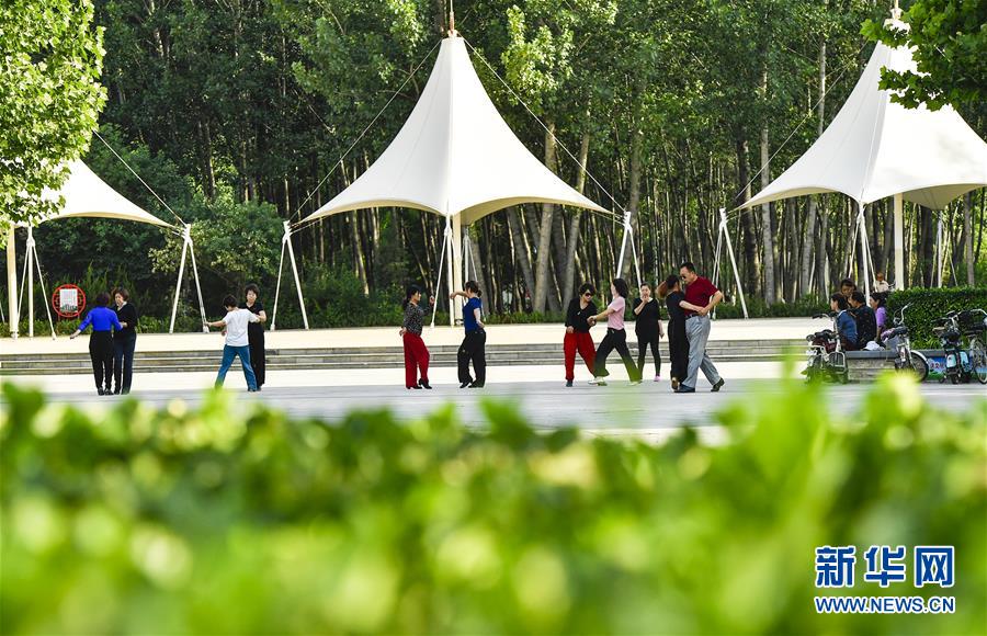 6月5日,市民在文安縣森林公園內(nèi)健身。近年來,河北省文安縣將植樹造林與城市建設(shè)有機(jī)融合,探索“政府引導(dǎo)、企業(yè)運作、多方共贏”的市場化植樹造林新模式,大規(guī)模推進(jìn)國土綠化,打造人與自然和諧共生的優(yōu)美生態(tài)環(huán)境,構(gòu)筑京津雄綠色屏障。截至目前,該縣森林覆蓋率已經(jīng)達(dá)到33%,城區(qū)綠地面積達(dá)到36.48%。新華社記者李曉果攝。
