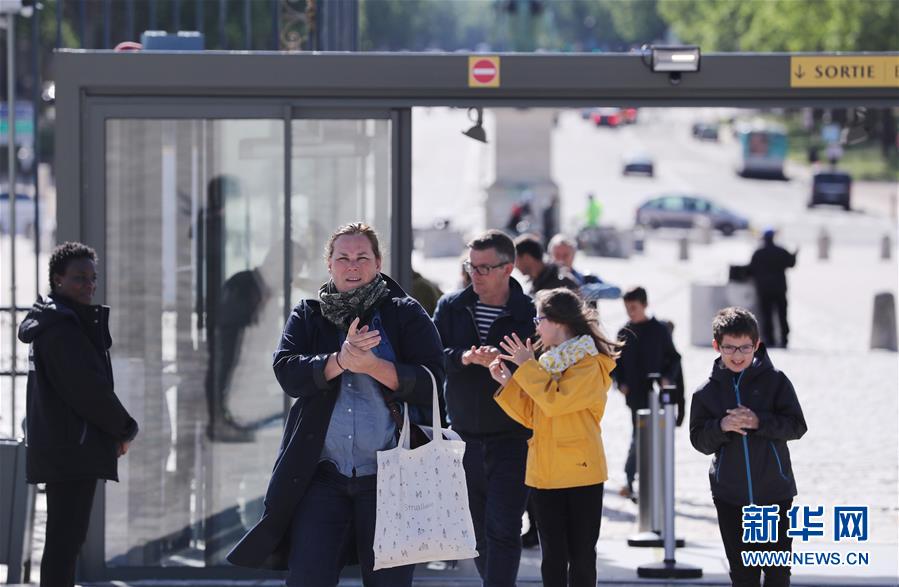 6月6日,在法國巴黎近郊的凡爾賽宮入口處,游客用景點提供的消毒免洗洗手液洗手。 新華社記者 高靜 攝