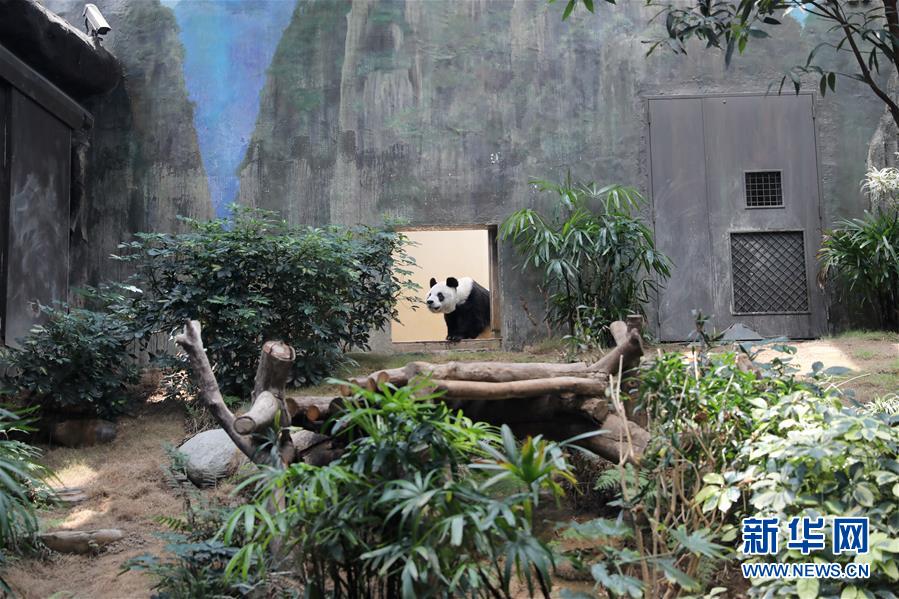 大熊貓“安安”來到香港海洋公園展區(qū)(5月11日攝)。新華社記者吳曉初攝