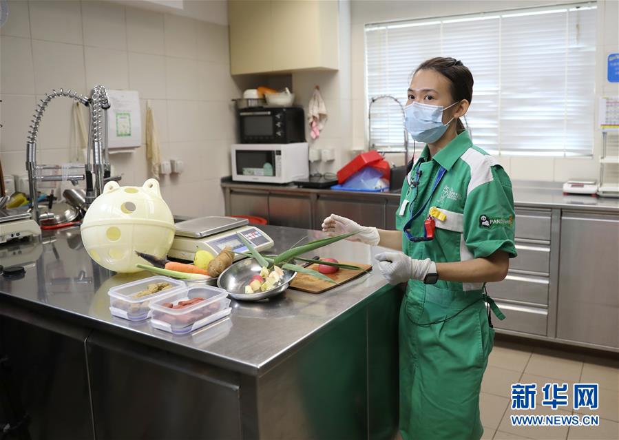 香港海洋公園陸生動物部監(jiān)督殷漫萍在熊貓廚房介紹熊貓食物的制作(5月11日攝)。新華社記者吳曉初攝