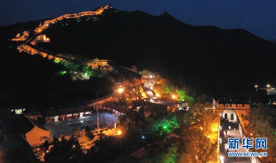 北京市延慶區(qū)八達嶺長城開啟夜游長城活動(6月6日攝,無人機照片)。隨著北京消費季的啟動,不少市民利用周末時間來到北京遠(yuǎn)郊的風(fēng)景區(qū)游玩,參加當(dāng)?shù)嘏e辦的各類消費季和休閑旅游活動。新華社發(fā)(張順延攝)