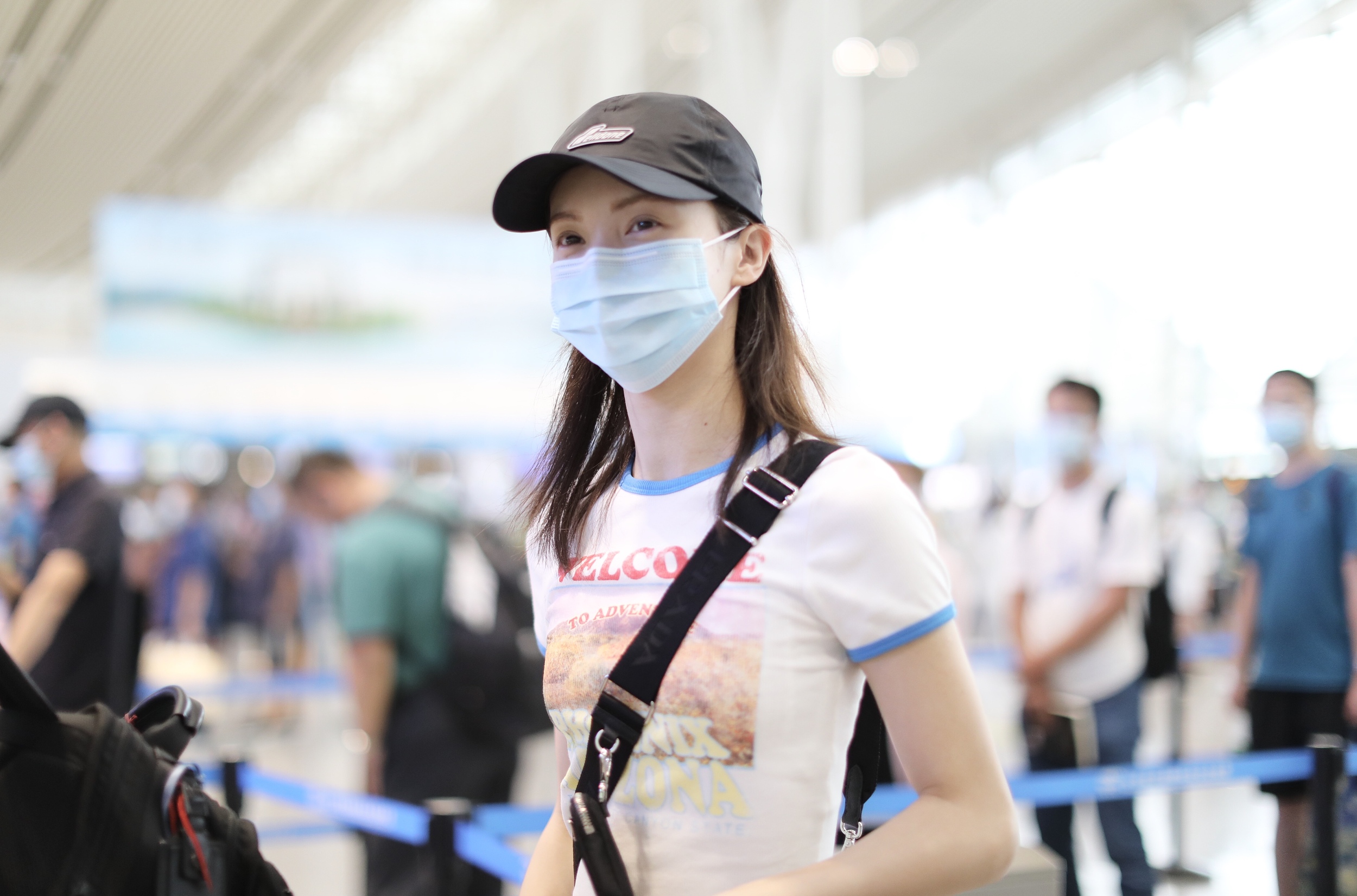 2020年6月9日,湖南長沙,金晨現(xiàn)身機(jī)場。