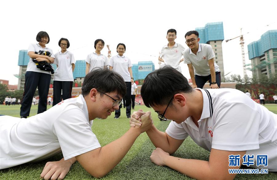 6月9日,河北省衡水市第二中學(xué)的高三學(xué)生在操場(chǎng)進(jìn)行掰手腕比賽。2020年高考臨近,河北省衡水市第二中學(xué)組織開(kāi)展多種形式的集體“減壓”活動(dòng),幫助高三學(xué)生在緊張備考之余釋放身心壓力,以輕松、樂(lè)觀、自信的心態(tài)迎接高考。新華社記者朱旭東攝