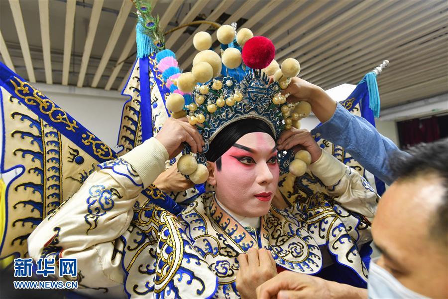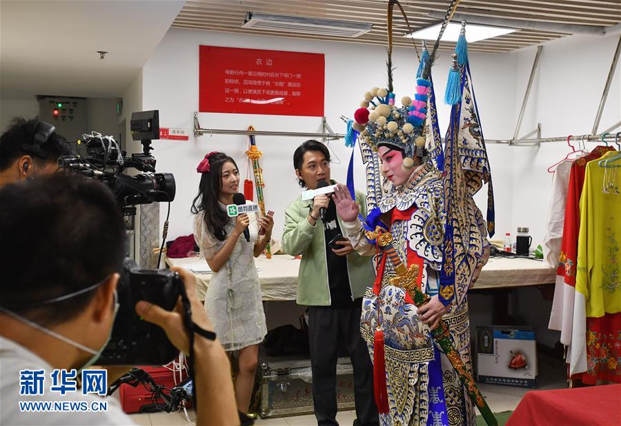 6月12日,直播工作人員探訪廣東粵劇院后臺(tái)。當(dāng)日,廣東粵劇院聯(lián)合酷狗網(wǎng)絡(luò)直播平臺(tái)推出“周末睇大戲(線上版)”,將線下劇場(chǎng)轉(zhuǎn)移到線上,在酷狗直播間里呈現(xiàn)粵劇的經(jīng)典劇目,為劇迷們打造一場(chǎng)“云端”盛宴。新華社記者 劉大偉 攝