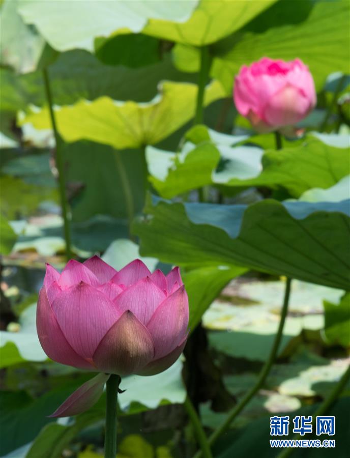 西湖曲院風荷盛開的荷花(6月12日攝)。隨著氣溫升高,杭州西湖荷花次第開放,引得游人駐足。新華社記者翁忻旸 攝